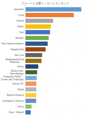 企業別の市場動向を見ると、Ajinomotoが圧倒的な存在感を示しており、グローバル主要メーカーランキングにおいて首位を占めている。同社はアミノ酸化学における長年の技術蓄積と安定供給体制を武器に、化粧品会社およびパーソナルケア企業との関係を深め、ブランド原料としての地位を強固にしている。次いでCrodaが続き、サステナブル原料のポートフォリオ拡大とグローバル流通網により市場影響力を確保している。ClariantやGalaxy、Tinci、Innospecなども地域特性を生かしながら存在感を示し、アジア勢ではToho Chemical Industry、Sino Lion、Zhangjiagang Great Chemicals、Miwon、Huzhou Ouli Biotechnology、Guangzhou Startec Science and Technologyなどが処方提案力とコスト競争力で台頭している。また台湾のTaiwan NJCや欧米勢であるStepan、Zschimmer & Schwarz、Solvayなども特化技術や用途別ラインアップにより差別化を図っている。Berg + Schmidtはランキングで最下位となったが、特定用途への深耕や特殊脂肪酸技術による再成長の余地が残されている。地域別に見ると、アジアは需要成長の中心地であり、中国・韓国を拠点とする企業はスキンケア市場の拡大とともに製品力を高めている。欧州企業は環境規制の中で高純度・高安全性原料への投資を強化し、北米市場では高級ヘアケアやプレミアムスキンケアの伸びが企業の販売戦略を後押ししている。こうした企業群の動きが複雑に交差し、競争環境は多層的な広がりを見せている。