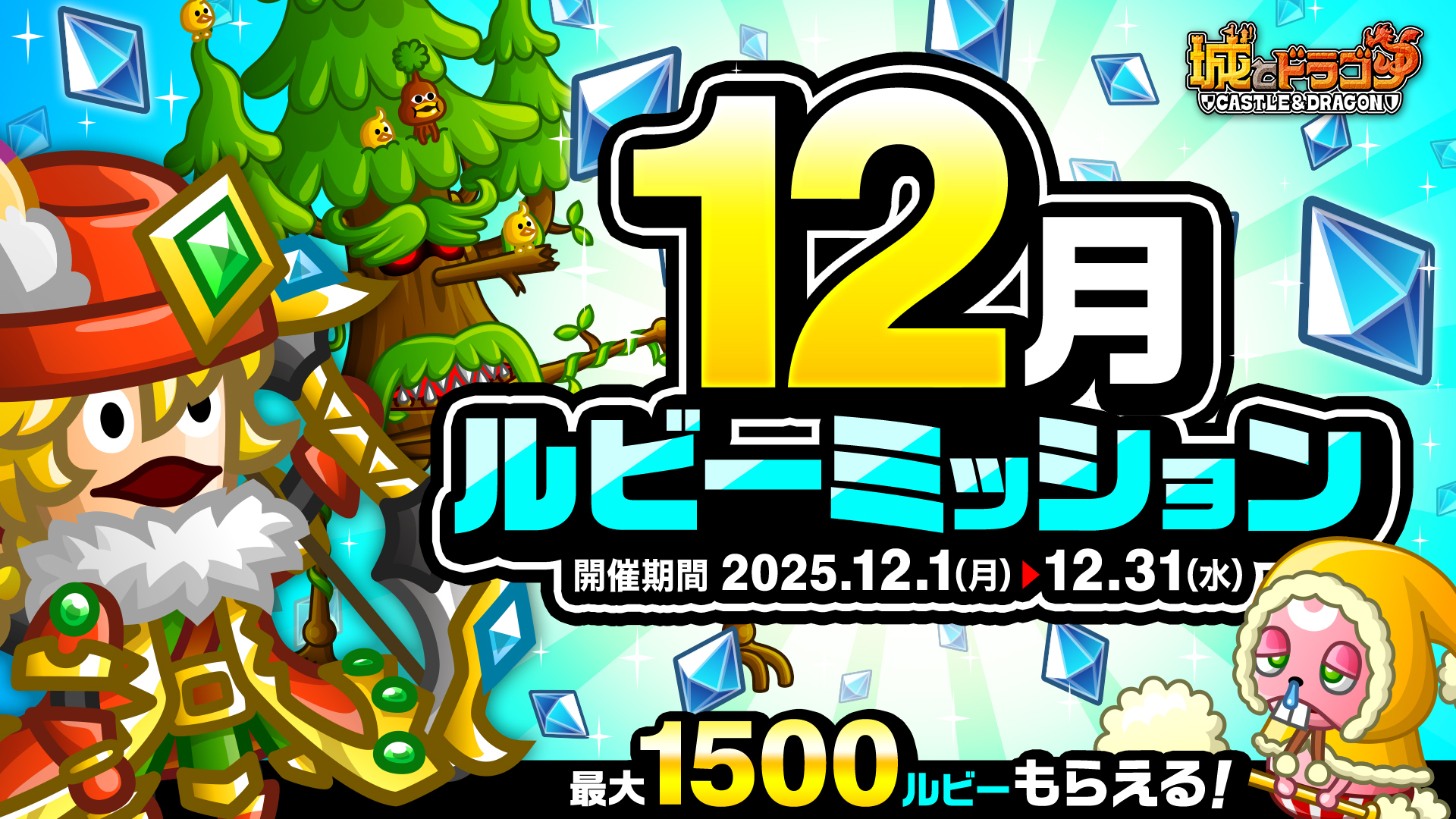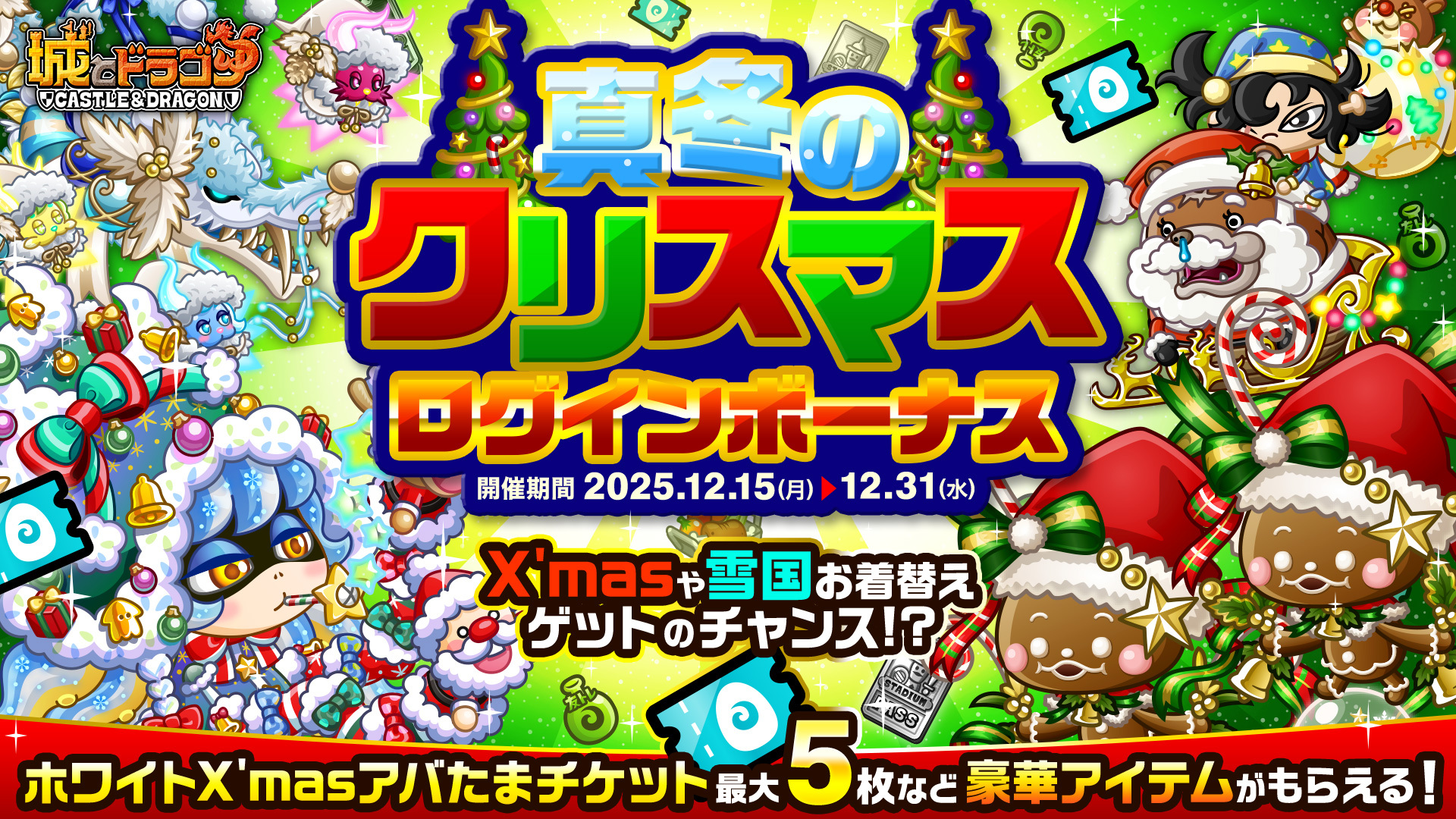 株式会社アソビズム(本社:東京都千代田区、代表取締役:大手智之)は、App Store・Google Playにて好評配信中の『城とドラゴン』で、「真冬のクリスマスログインボーナス」と「真冬のクリスマスミッション」を2025年12月15(月)より開催いたします。