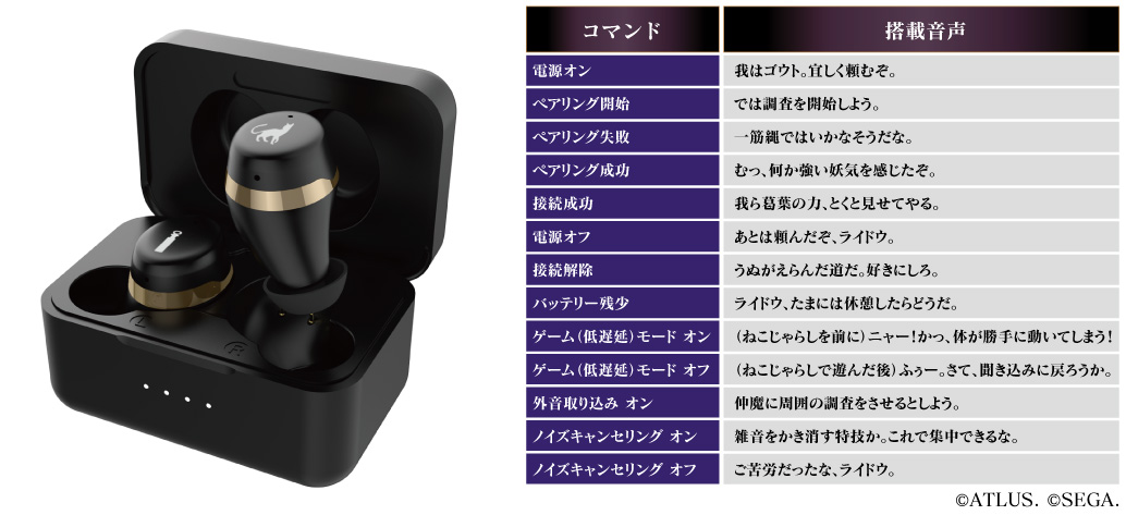 本モデルは、業斗童子(CV:中田譲治)の録り下ろし音声ガイダンス(全13ワード)を搭載。また、充電ケースにはロゴと桜を、イヤホン本体には封魔管と業斗童子のシルエットを配置し、作品の世界観を表現しています。