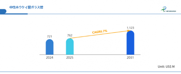 LP Information調査チームの最新レポートである「世界中性ホウケイ酸ガラス管市場の成長予測2025~2031」(https://www.lpinformation.jp/reports/56383/neutral-borosilicate-glass-tube)によると、2025年から2031年の予測期間中のCAGRが6.7%で、2031年までにグローバル中性ホウケイ酸ガラス管市場規模は11.23億米ドルに達すると予測されている。