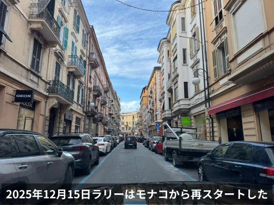 フランス、スイス、イタリアを経由し、クリスマスの装飾に彩られたモナコへ到着したピースラリーチームは、モナコウィークインターナショナル本社(モンテカルロ)での準備を経て、12月15日に再出発いたしました。