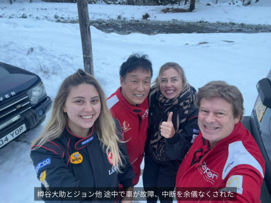 冬季の雪道を考慮し、今回は通常のヒストリックカーではなく、走破性の高い2台のランドローバーを使用。しかし、日が落ちた標高約2000メートルの雪道にて、1台の車がギアボックスの故障と見られるトラブルにより走行不能となりました。チームはもう1台のセキュリティーカーにて峠越えを断念し、来た道を引き返す判断を下しました。