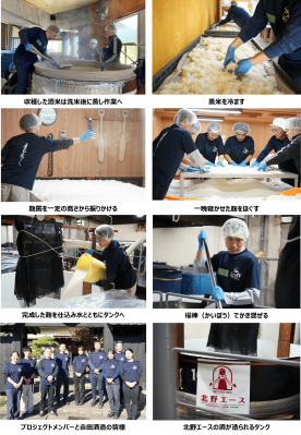 2025年10月下旬、再び福井県永平寺町を訪れた北野エースのプロジェクトメンバーは、収穫した酒米を使用した酒造りを体験。伝統的な製法が採用されている昔ながらの酒蔵で、「目が届く」「手が届く」「心が届く」をモットーに掲げられている吉田酒造さまとの想いがこもった日本酒が完成しました。