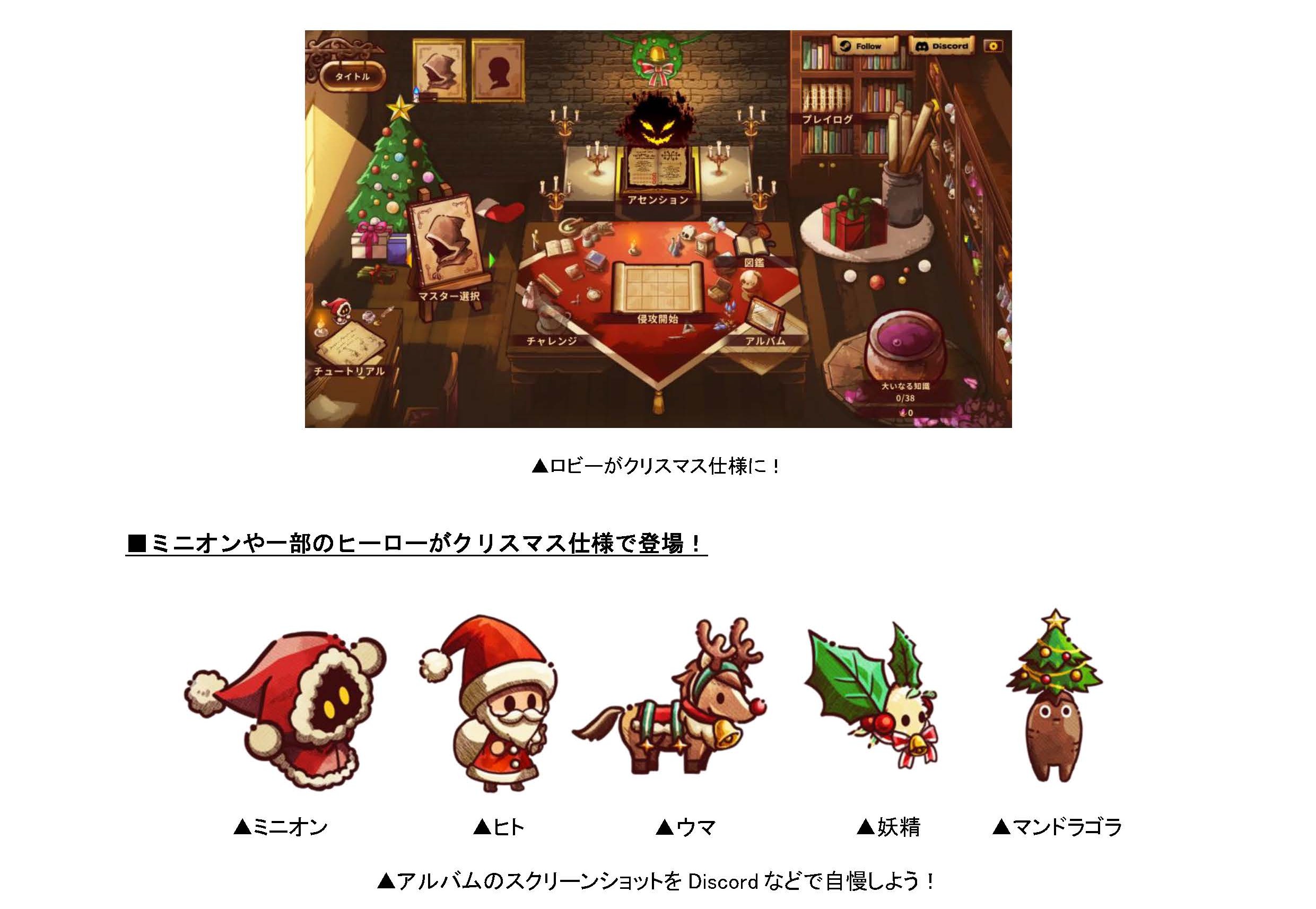 日本時間の12月18日(木)に、工場ビルド×ローグライト×タワーディフェンスゲーム『ShapeHero Factory』にてSteam版の“ホリデーアップデート”を実施いたしました。今回のアップデートでは、新たなチャレンジモード“聖夜のプレゼント直行便”を期間限定で開催し、ロビーや一部ヒーローのスキンもクリスマス仕様に変わります。さらに、公式Discordチャンネルでは今回のチャレンジモードに関連した企画を実施予定です。『ShapeHero Factory』でミニオンたちとクリスマスを楽しみましょう!