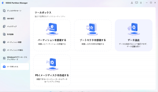 方法1:4DDiG Partition Managerでパソコンデータを安全に消去する