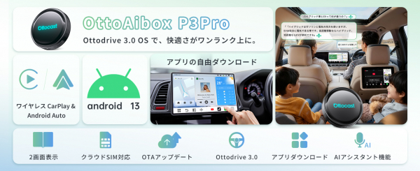カーエレクトロニクス製品の開発を手がける OTTOCAST は、AIBOXシリーズの最新モデル 「OttoAibox P3 Pro」 を発表しました。