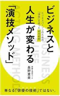役割(ロールプレイング)を変えて「演技する」ことが一つの打開策になります。演技コーチ・長野里美がまったく新しいビジネススキルを提案しています。経営者やビジネスパーソンなどの一般社会人に向けて、初の著書「ビジネスと人生が変わる『演技メソッド』」を出版、出版日翌日に5部門においてAmazon1位を獲得しました。現在はAmazon・Kindle版で880円で販売中です。