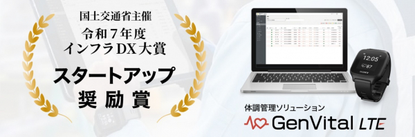 このたび、2025年5月の提供開始からわずか半年で100社を超えるユーザーから、累計2,200台以上の導入をいただいた、体調管理ソリューション「GenVital(ゲンバイタル) LTE」が、有効性、先進性、波及性の各観点において以下の点を高く評価され、「スタートアップ奨励賞」を受賞しました。
