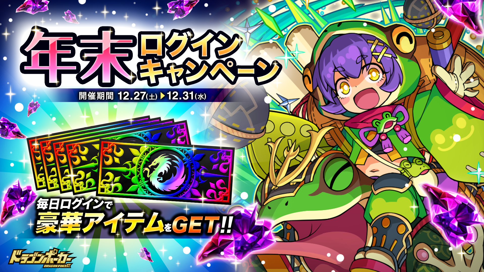期間中に5日間ログインすると、竜石が最大20個とSSレアガチャチケット最大5枚がもらえる「年末ログインキャンペーン」を開催!毎日ログインして豪華報酬を受け取りましょう!