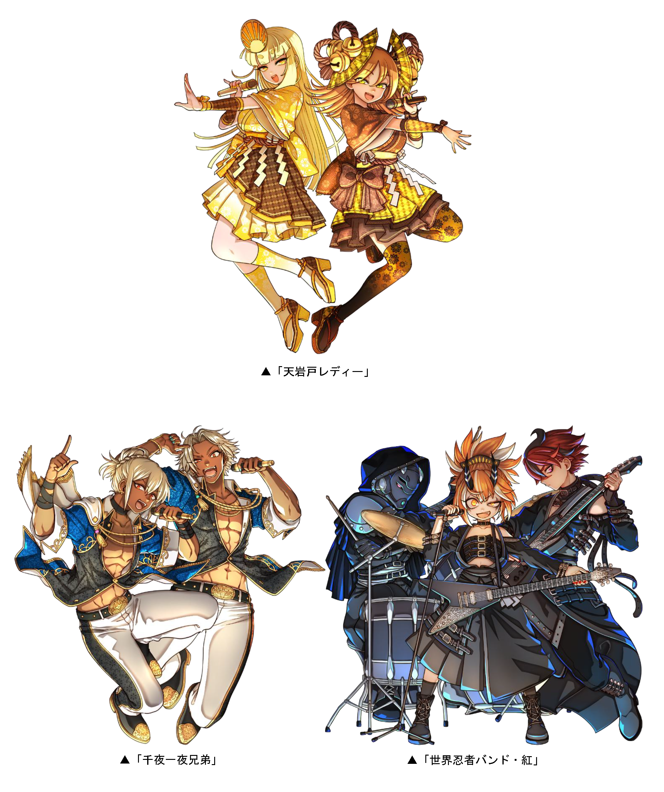 本ダンジョンには、新たに「天の岩戸レディー」「千夜一夜兄弟」「世界忍者バンド・紅」が登場!また、クリアした回数に応じて竜石を手に入れることができます。