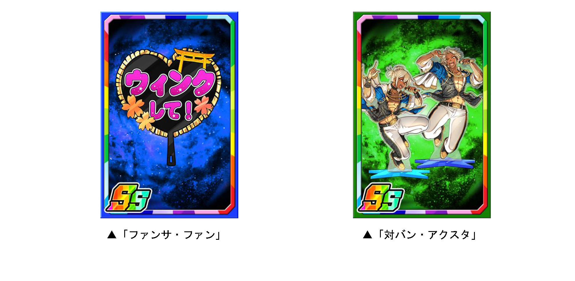 ダンジョンのボスモンスターを倒すと、まれに新たな限定子分カード「ファンサ・ファン」「対バン・アクスタ」が手に入ります。限定子分カードは複数枚集めると進化ができ、子分スキルの効果が強力になります。