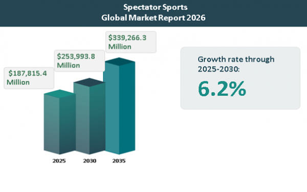 2025年、世界の観戦スポーツ市場は約1,878.154億ドルの価値に達し、2020年以降、年平均成長率(CAGR)12.1%で拡大しました。市場は2025年の1,878.154億ドルから2030年には2,539.938億ドルに成長すると予測され、この期間のCAGRは6.2%です。2030年以降も市場はCAGR6.0%で成長を続け、2035年には3,392.663億ドルに達すると見込まれています。