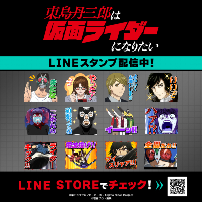 アニメ『東島丹三郎は仮面ライダーになりたい』初となるLINEスタンプがインクルーズの販売アカウントより配信開始!是非、LINEスタンプでもアニメ『東島丹三郎は仮面ライダーになりたい』の世界観をお楽しみください。