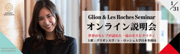 ホスピタリティマネジメント分野において世界大学ランキング第6位を誇り、有名ホテルの人事担当者も一目をおく大学である。(参照元:https://www.glion.jp/)