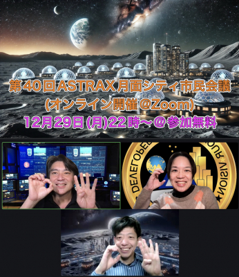 世界中の人々の夢を宇宙で実現させる民間宇宙サービスプラットフォームを提供する宇宙ベンチャー企業株式会社ASTRAX(アストラックス、以下 ASTRAX、本社:神奈川県鎌倉市、代表:代表取締役・民間宇宙飛行士 TAICHI(山崎大地))のグループメンバーが構成するASTRAX月面シティは、2025年12月29日に、オンライン(ZOOM)にて、第40回となるASTRAX月面シティ市民会議を開催しました。