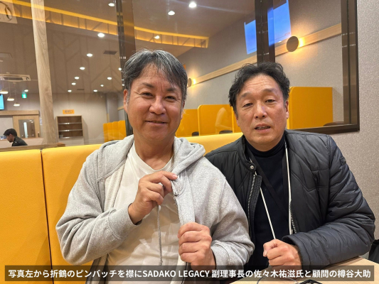 SADAKO LEGACYは、原爆の犠牲となった佐々木禎子が遺した「折り鶴」を通じ、平和の大切さを次世代、そして世界へと繋ぐ活動を続けてまいりました。 この度顧問に就任した樽谷大助氏は、2024年4月にバチカンにて前ローマ教皇へ「禎子の折り鶴レプリカ」を寄贈した実績を持つ、国際的な平和活動家です。現在も世界各地を奔走し、折り鶴に込められた「サダコ・スピリット」を広めています。 樽谷夫妻を新顧問に迎えることで、当法人の国際的な発信力を強化し、より多角的な平和活動を展開してまいります。