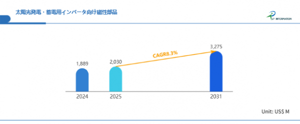 LP Informationの「世界太陽光発電・蓄電用インバータ向け磁性部品市場の成長予測2025~2031」(https://www.lpinformation.jp/reports/566416/magnetic-components-for-photovoltaic---energy-storage-inverters)によれば、当該市場は予測期間中に年平均成長率(CAGR)8.3%で拡大し、2031年には市場規模が32.75億米ドルに達すると見込まれている。これは、単なる部品需要の増加を意味するのではなく、再生可能エネルギーの本格的な電力インフラへの統合を象徴している。