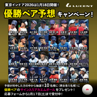 このたび、大会の優勝ペア直筆のサインボールが抽選でもらえるプレゼントキャンペーン『東京インドア2026 優勝ペア予想キャンペーン』をルーセント公式Xならびに公式Instagramで開始いたしました。