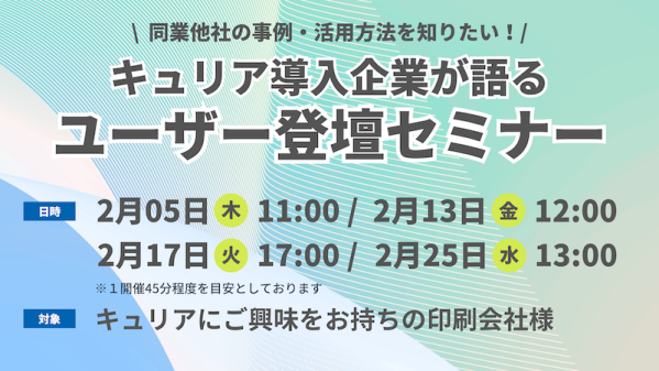 スマホコンテンツ制作ツール「キュリア」を運営する株式会社ミリアド(本社:東京都渋谷区、代表取締役CEO:樋口 清政)は、2026年2月に、印刷業界向けに ユーザー企業の生の声をお届け!キュリア導入企業 登壇セミナー と題して、杜陵高速印刷株式会社(本社:岩手県盛岡市)にご登壇いただく無料オンラインセミナーを開催することをお知らせいたします。