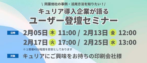 内 容:【ユーザー企業の生の声をお届け】キュリア導入企業さま登壇セミナー