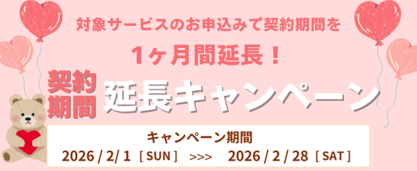 →上記サービスを契約期間12ヶ月間でご契約いただくと、契約期間を1ヶ月間延長!
