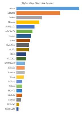 LP Informationトップ企業研究センターの分析によれば、世界の空手着市場においては、Adidas、MIZUNO、Tokaido、Shureido、Century LLC、ARAWAZA、Daedo、Tozando、Budo-Nord、SHOBUといった企業が主要プレイヤーであり、2024年時点でこれらトップ10社が売上の約45.0%を占めている。