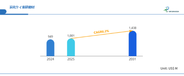 LP Information調査チームの最新レポートである「世界炭化ケイ素研磨材市場の成長予測2025~2031」(https://www.lpinformation.jp/reports/424557/silicon-carbide-abrasives)によると、2025年から2031年の予測期間中のCAGRが6.2%で、2031年までにグローバル炭化ケイ素研磨材市場規模は14.38億米ドルに達すると予測されている。