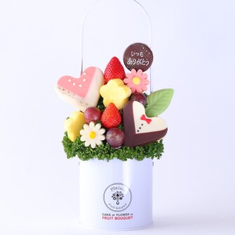 本商品は、人気のフルーツブーケ「Mariage」に “いつもありがとう” のメッセージ入りチョコレートプレートをセットした、愛妻の日だけの特別仕様です。