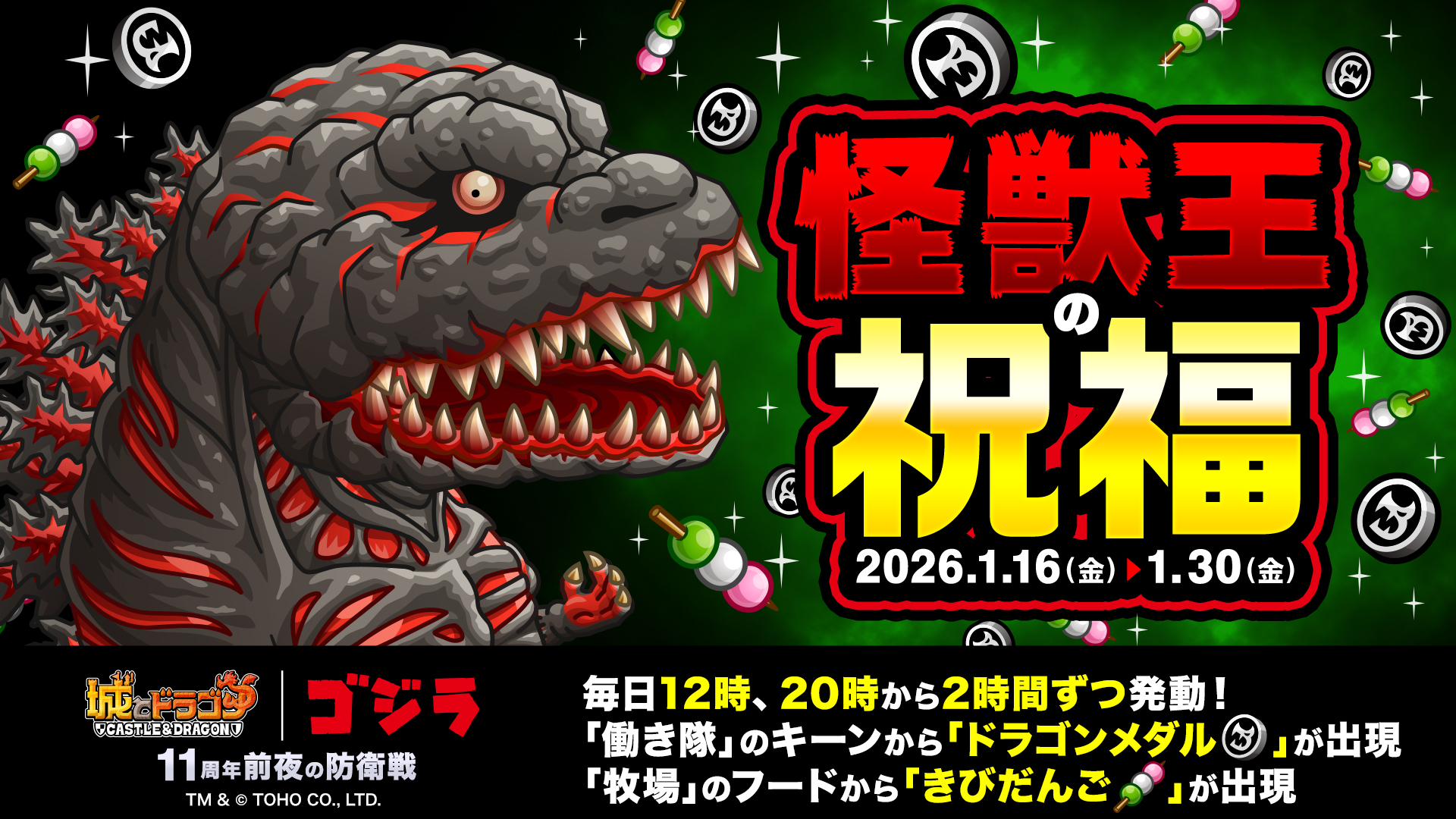 株式会社アソビズム(本社:東京都千代田区、代表取締役:大手智之)は、App Store・Google Playにて好評配信中の『城とドラゴン』で、『ゴジラ』との復刻コラボイベントを2026年1月16日(金)より開催いたします。