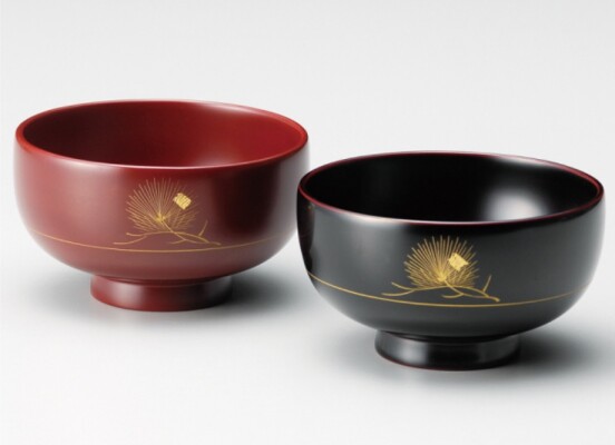 京都の伝統美を日常に取り入れた、【京都漆器】夫婦椀「一会松」2客セット。