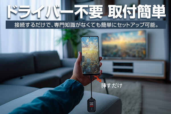 本製品は、USB-C接続に対応し、パソコンやスマートフォン、各種映像機器の画面を、ケーブル不要でディスプレイやプロジェクターへ出力できるワイヤレスHDMI送受信機です。ドライバーのインストールは不要で、機器を接続するだけですぐに使用可能。会議、プレゼンテーション、教育現場、イベント運営など、幅広いシーンで快適な映像共有を実現します。