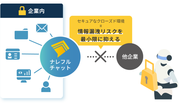 ナレフルチャットは、企業専用のクローズド環境でセキュアに利用できる対話型生成AIチャットツールです。従業員のAIリテラシー向上から、組織全体のナレッジ共有まで包括的にサポートし、企業の生成AI導入における悩みを解決いたします。