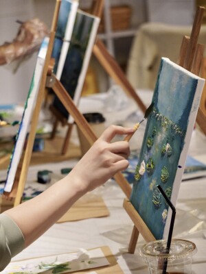 ・アクリルテクスチャアート:モネの代表作《睡蓮》などの名画をモチーフに光や色の重なりを感じながら表現するアート体験