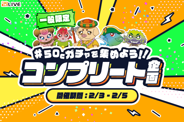 21LIVEでは、2月3日(火)から2月5日(木)まで『50Cガチャを集めよう!!コンプリート企画』を開催します。