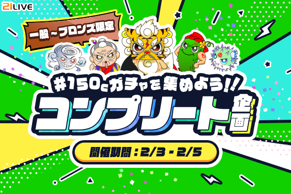 2月3日(火)から2月5日(木)までの3日間、21LIVEにて『150Cガチャを集めよう!!コンプリート企画』を開催します。