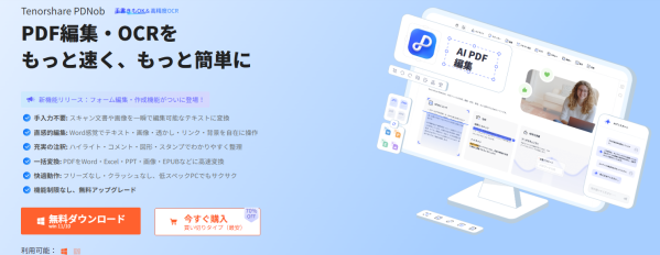 そこでおすすめしたいのが、AI搭載PDF編集ソフト「Tenorshare PDNob」です。