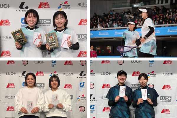 「ルーセントカップ 第66回東京インドア 全日本ソフトテニス大会」は2026年1月18日(日)に東京体育館(東京都渋谷区)で開催されました。2025年の国内の主要な大会で優秀な成績を収めた男女8ペアが出場し、頂点を競う大会です。予選リーグ戦(2ブロック)を行い、各ブロック1位、2位によるトーナメントを実施しました。