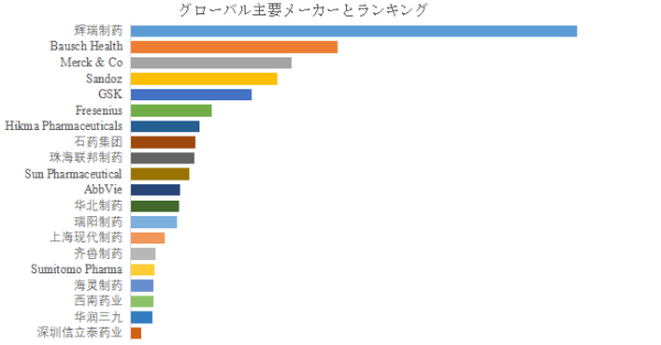 LP Informationのトップ企業研究センターによると、 抗生物質製剤の世界的な主要製造業者には、辉瑞制药、Bausch Health、Merck & Co、Sandoz、GSK、Fresenius、Hikma Pharmaceuticals、石药集团、珠海联邦制药、Sun Pharmaceuticalなどが含まれている。2024年、世界のトップ5企業は売上の観点から約19.0%の市場シェアを持っていた。