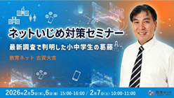 株式会社教育ネット(神奈川県横浜市都筑区 代表:大笹いづみ)は、「ネットいじめ対策セミナー」をオンラインにて2月5日(木)、6日(金)、7日(土)に開催します。令和7年度 小中学生を対象に実施した「令和7年度インターネット利用実態調査」によると、SNSやメールを通じたコミュニケーションにおいて、中学2・3年生の50%が「うまく伝わらない」という不安を抱えている実態が浮き彫りとなりました。その他、セミナーでは調査結果の一部を公開しながら、①子どもの実態の把握、②AIによるトラブル、③学校でできる対策を確認することができます。