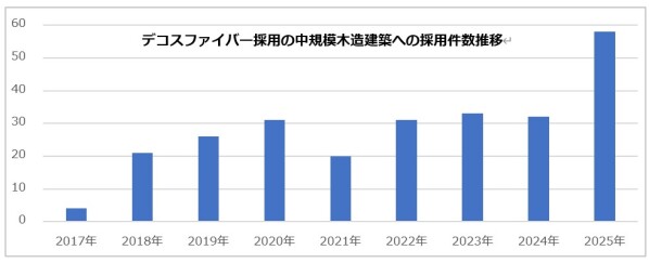 デコスファイバーの中規模木造建築への採用数が過去最高、前年の1.8倍に