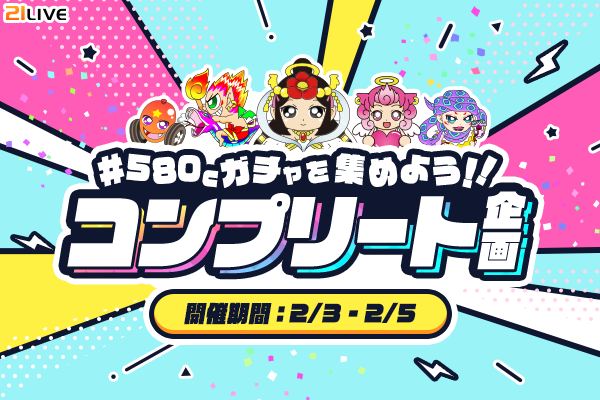 2月3日(火)から2月5日(木)までの期間、21LIVEでは『580Cガチャを集めよう!!コンプリート企画』を開催します。