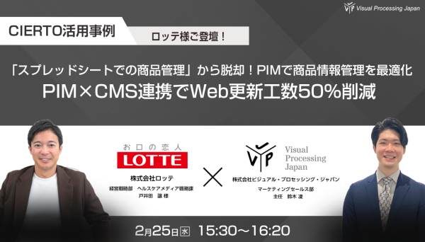 この度、「お口の恋人」としておなじみの株式会社ロッテ様をお招きし、 同社が運営するオウンドメディアにおける商品情報管理(PIM)の活用と、 CMS連携によるWebサイト運営の効率化について、ご担当者様より特別にお話しいただきます。