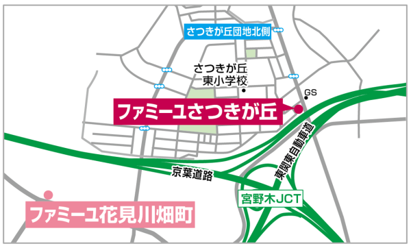花見川区は、千葉市内や都内へのベッドタウンとして開発され、中でも北部のさつきが丘エリアは交通の要所でもある宮野木JCTへも近い、賑わいのあるロケーションです。千葉市内では、2023年6月にオープンした「ファミーユ花見川畑町ホール」に続き、本ホールで2店舗目の展開となり、今後もますます高まる家族葬ニーズに柔軟に対応してまいります。