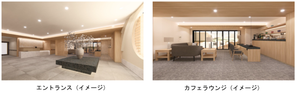 当ホームの魅力は、和とモダンが調和する洗練された共用部です。エントランスホール中央には花台を設置し、訪れる方々を和の趣でお迎えします。さらに奥に広がるカフェラウンジは、ご入居者の語らいの場、また大切な方との憩いのひとときを過ごす場として、日々の暮らしに上質な彩りと心の潤いをもたらします。