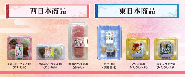 例年発売している人気桜商材の桜もち・うぐいす餅です。