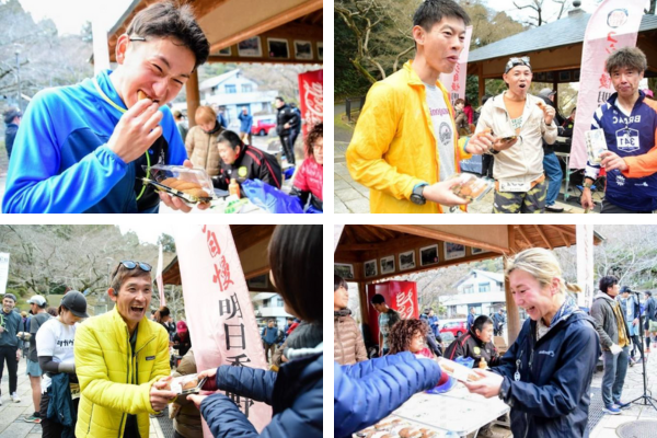 急勾配を駆け上がった選手の皆さまに、明日香野は「増量 冬のわらび大福」をお渡し。柔らかな食感とやさしい甘さで、ゴール後に憩いの時間をお届けしました。