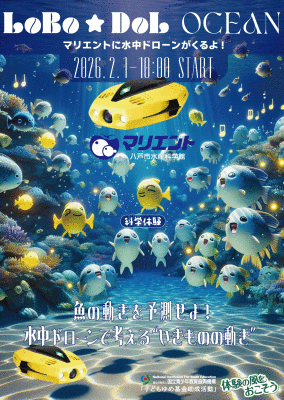 本技術は、八戸市水産科学館マリエントの大型水槽を活用した水中ドローン体験型ワークショップの中で公開されます。
