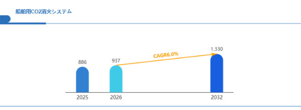 国際海運量の増加や洋上風力・オフショア資源開発の拡大は、船舶用CO2消火システムの新規需要を生みます。特に機関室や発電区画といった密閉区画を持つ大型艦船・海洋構造物での採用が期待され、地域別に成長ポテンシャルが大きいです。市場予測でも関連セグメントの拡大が示唆されています。