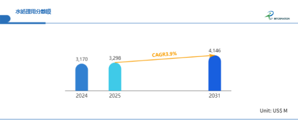 LP Informationの最新レポート「世界水処理用分離膜市場の成長予測2025~2031」(https://www.lpinformation.jp/reports/567795/water-treatment-separation-membrane)によれば、当該市場は2025年から2031年までの間に年平均成長率(CAGR)3.9%で成長し、2031年には市場規模が41.46億米ドルに達する見通しである。この数字は、水処理用分離膜が依然としてインフラ、環境、産業分野において中長期的に“堅実な成長余地”を持っていることを意味する。特に、水リサイクルの制度化が進む北米・欧州に加え、産業排水処理需要が拡大するアジア市場が牽引役となっており、地域ごとの需要特性に応じた戦略的展開が求められている。