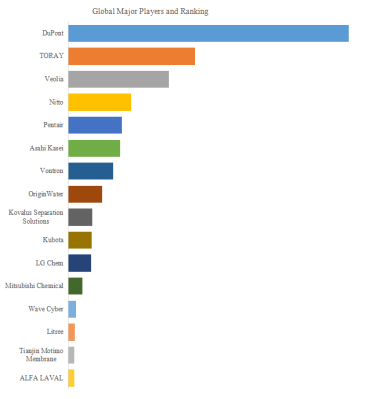 市場は高い技術参入障壁と設備投資コストを背景に、寡占化が進行している。2024年時点で、DuPont、TORAY、Veolia、Nitto、Pentair、Asahi Kasei、OriginWater、Vontron、Kovalus Separation Solutions、Kubotaといった世界トップ10企業が、売上ベースで約77.0%のシェアを保持している。これらの企業は、原材料調達から膜設計・製造、モジュール組立、運用メンテナンス支援に至るまで、垂直統合型のバリューチェーンを構築し、製品性能・長寿命化・メンテナンス性といった多面的な価値を提供している。技術競争力とブランド信頼性が市場支配力を強化する鍵となっている。